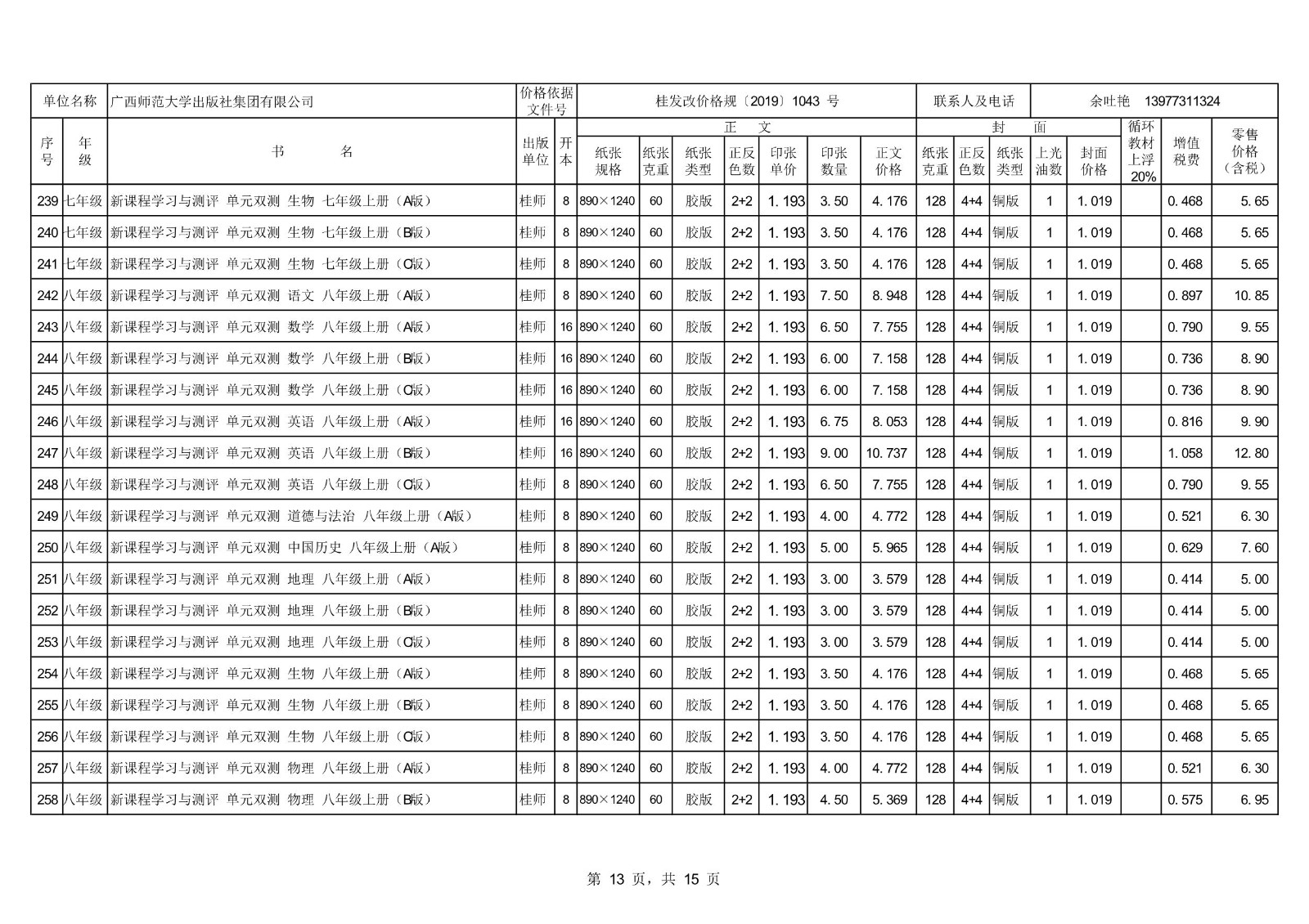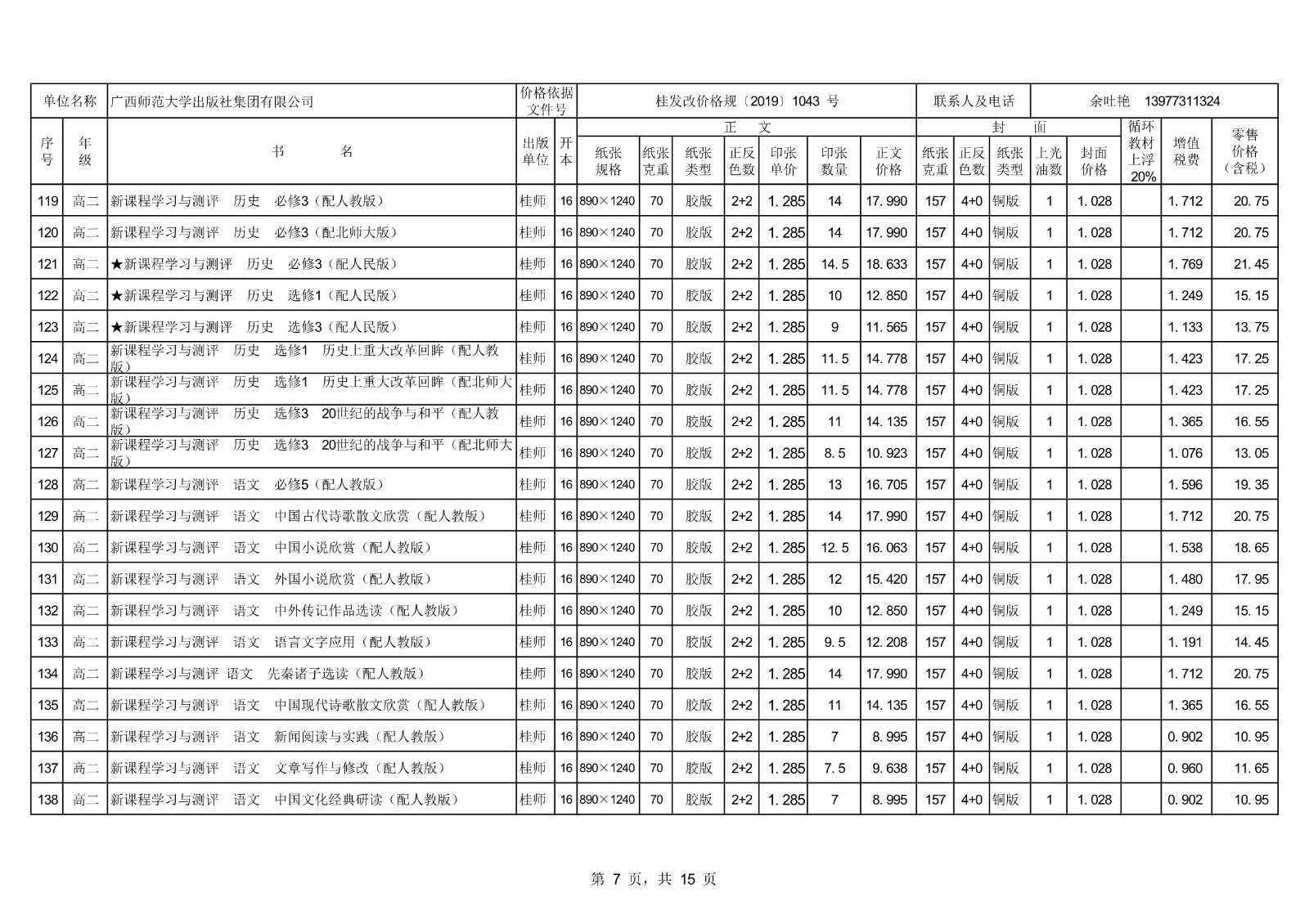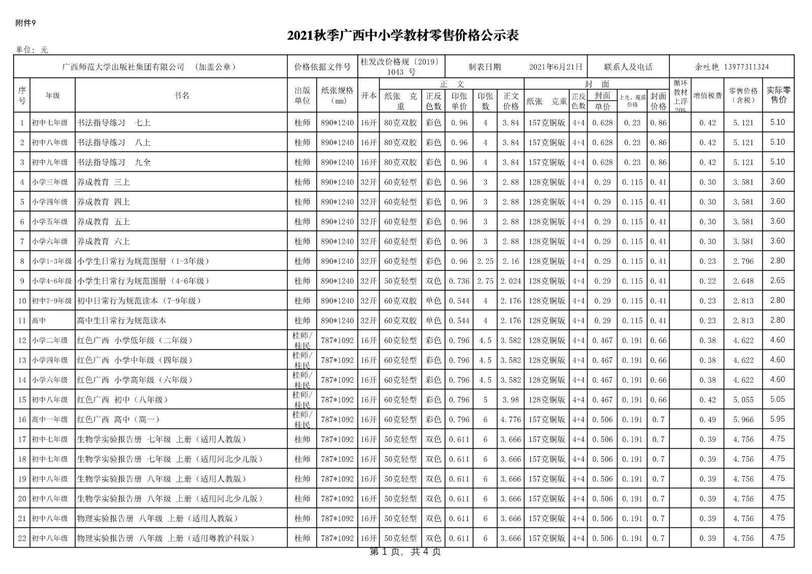 2021秋季廣西中小學(xué)教材、教輔零售價(jià)格公示