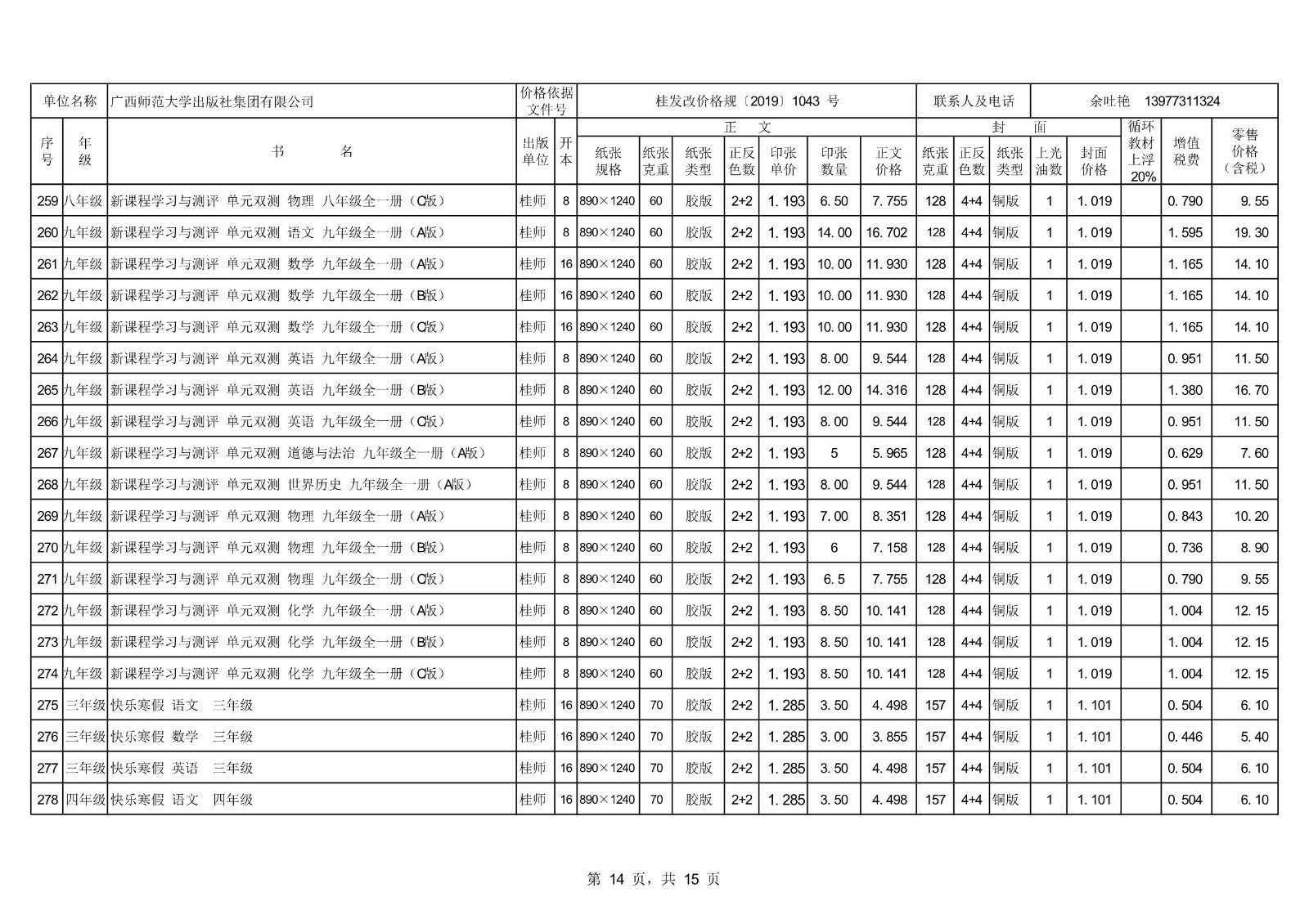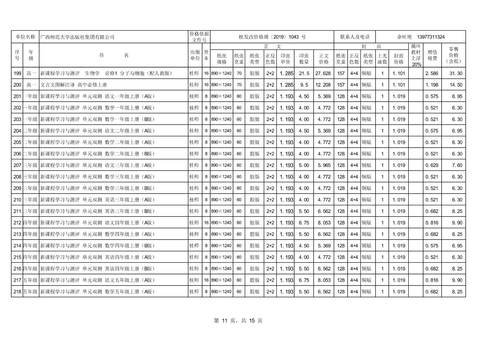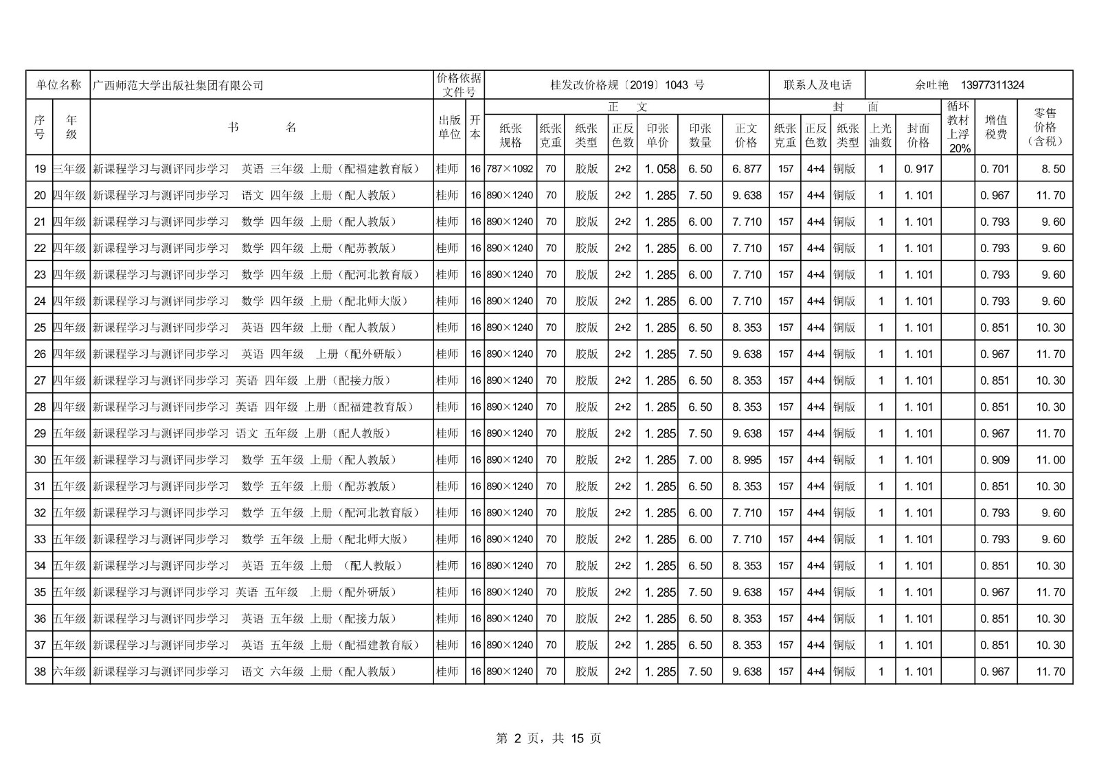 2021秋季廣西中小學(xué)教材、教輔零售價(jià)格公示
